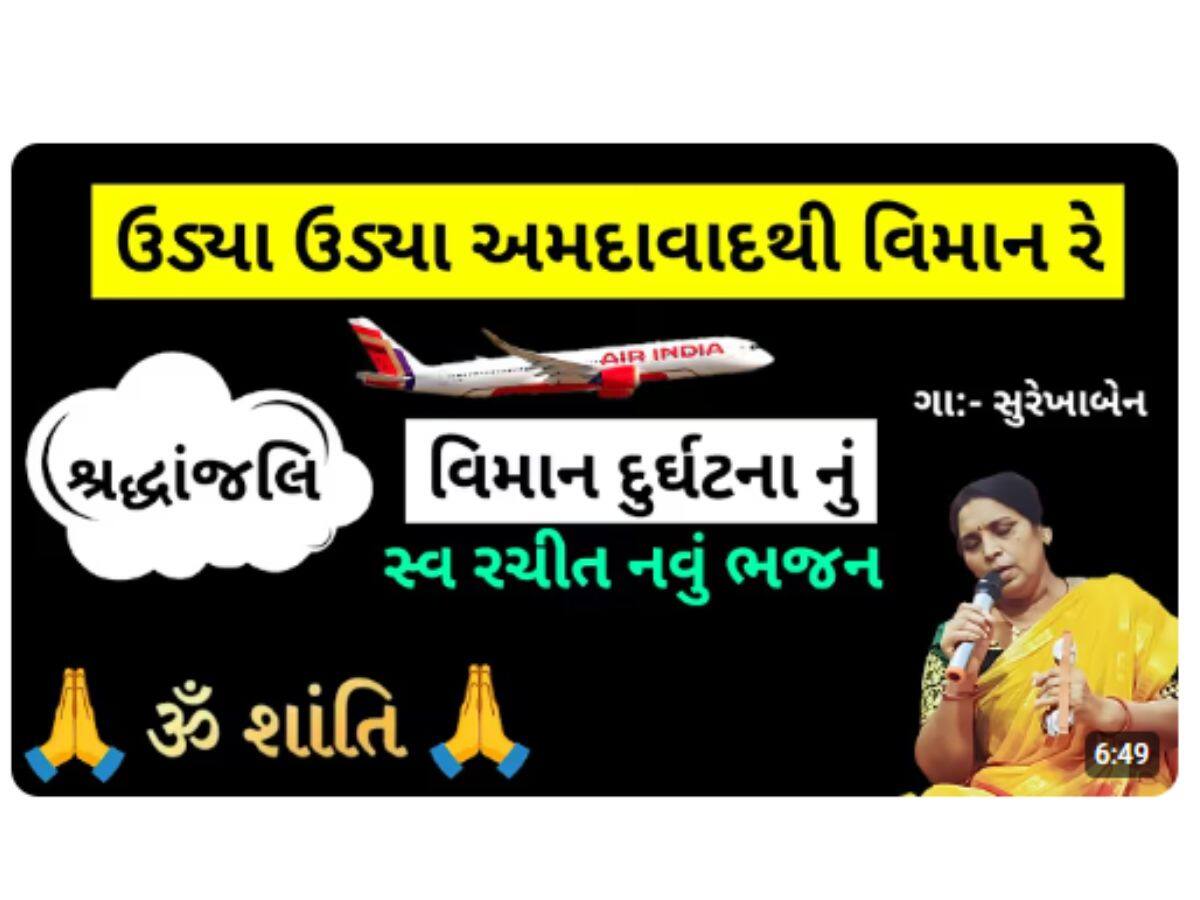 નોંધનીય છે કે, અમદાવાદ વિમાન દુર્ઘટનામાં 270થી પણ વધુ લોકોના મોતને લઈ ચોતરફ શોકનો માહોલ છવાયેલો છે. આ વિમાન દુર્ઘટનામાં સાબરકાંઠા અને અરવલ્લી જિલ્લાની ચાર મહિલાઓએ પણ જીવ ગુમાવ્યા છે. ત્યારે દુઃખદાયક ઘટના પર હિંમતનગરના સ્થાનિક ભજન મંડળની મહિલાએ દુઃખ વ્યક્ત કરતું ગીત લખી તેને ભજનના સ્વરમાં ગાયું હતું અને ટ્યુબ ચેનલ પર શેર કર્યું હતું.