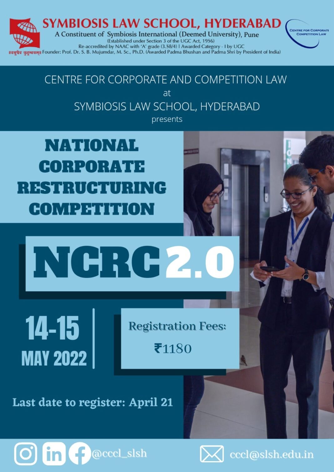 The Centre for Corporate and Competition Law at Symbiosis Law School, Hyderabad is glad to announce that we are conducting the 2nd Edition of the one-of-a-kind National Corporate Restructuring Competition.