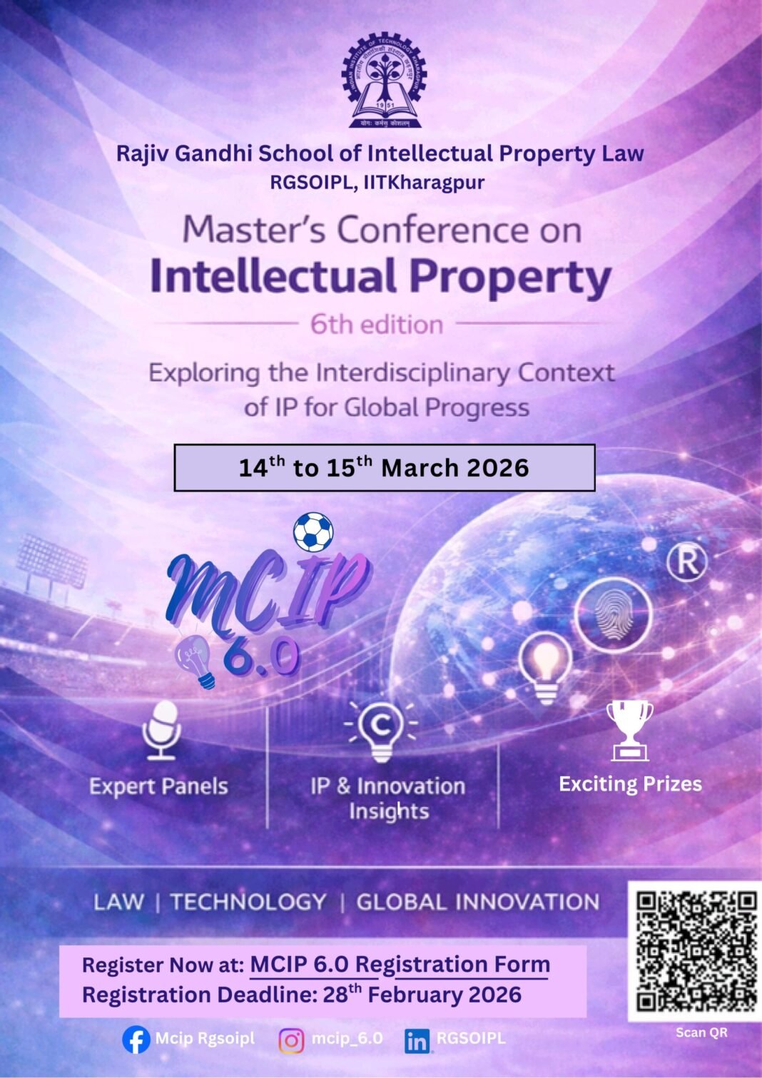 Guidelines:-The submissions must be made by 28 February, 2026, and must adhere to the theme: “IP and Sports”. The duration of the video must not exceed 3 minutes and it must not include any obscene language, words, remarks, gestures.