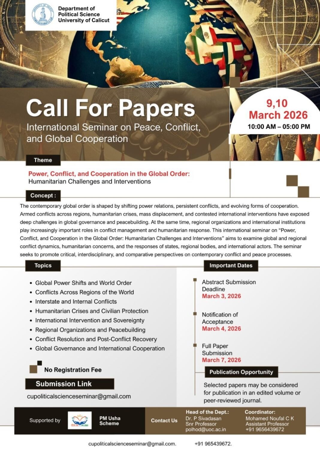 Scholars, researchers, and students are invited to submit abstracts for the upcoming conference hosted by the Department of Political Science, University of Calicut.