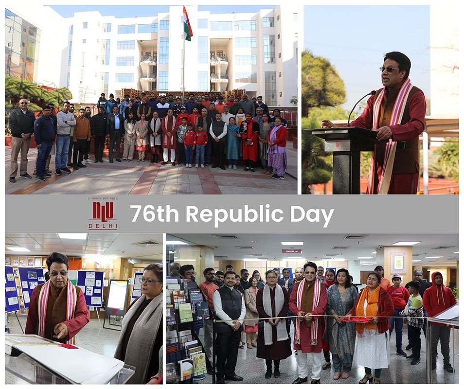 On the Occasion of 76th Republic day, NLUD proudly celebrates this momentous day and reaffirms the commitment to the ideals of justice, liberty, equality, and fraternity enshrined in the Constitution of India in the presence of Vice-Chancellor Prof. Dr. G.S. Bajpai, Registrar Prof. Dr. Ruhi Paul, Faculty Members, Staff and Students.