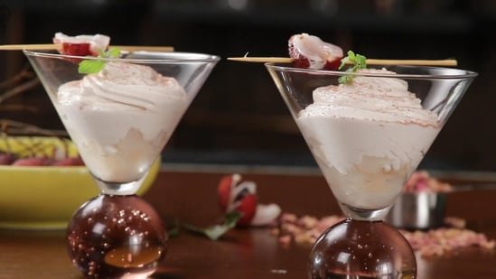 The lychee and rose mousse recipe takes approximately 35 minutes to prepare. (@sanjeevkapoorkhazana/YouTube)
