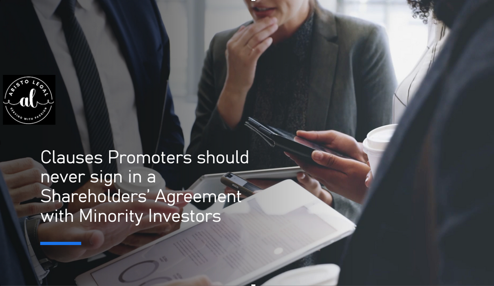 The Shareholders Agreement (SHA) becomes the governing framework of this relationship, and unfortunately, the initial draft often favours the investor. Backed by experienced legal teams, minority investors may propose clauses that, despite their small stake, grant them disproportionate control or protection—often at the promoters’ expense. From unnecessary veto rights to post-exit restrictions, these clauses can undermine a founder’s ability to lead their company, dilute equity unfairly, and restrict future opportunities.