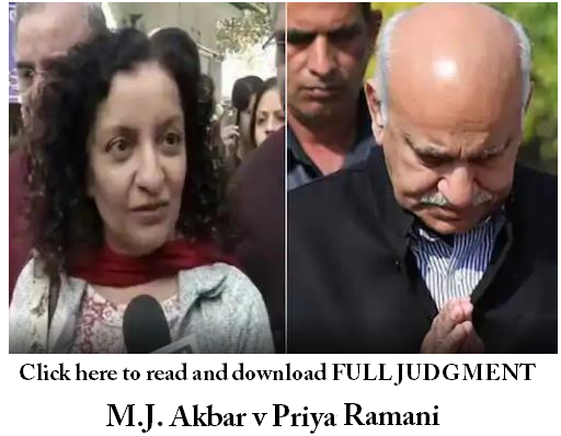 The “COURT OF SHRI RAVINDRA KUMAR PANDEY, ACMM­01, ROUSE AVENUE DISTRICT COURTS, NEW DELHI” vide its judgment dated 17th Feb., 2021 has dismissed the criminal defamation case filed by Former Union Minister M.J. Akbar (complainant).