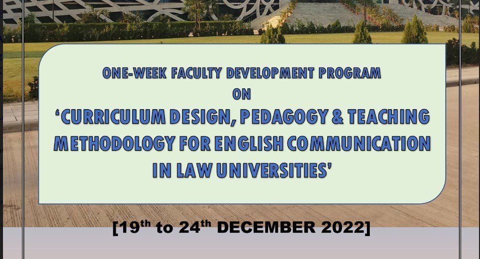 - Faculty Development Program on “Curriculum Design, Pedagogy and Teaching Methodology for English Communication in Law Universities” by GNLU: Dec 19-24