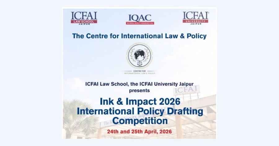 The Centre for International Law & Policy, ICFAI Law School, The ICFAI University Jaipur, proudly invites students, researchers, and policy enthusiasts to participate in Ink & Impact 2026 — a premier platform designed to showcase your expertise in international policy drafting.