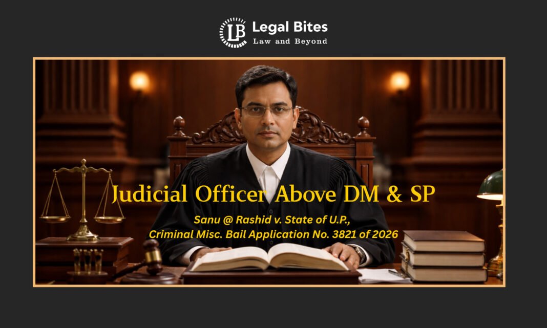 In a significant judgment reinforcing the supremacy of the judiciary in matters concerning the administration of justice, the Allahabad High Court held that a Judicial Officer, while discharging judicial functions, stands above the District Magistrate, Superintendent of Police, and even the political executive. The Court observed that disregard of judicial orders is not merely contempt of court but a direct challenge to the authority of law and the rule of law itself.