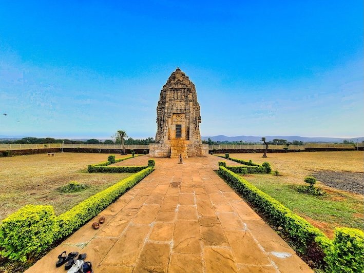 Ranmukteshwar Temple – The temple faces west and stands over a jagati (platform). It consists of a square garbhagrha (sanctum) and a narrow antarala. The sanctum doorway consists of multiple shakhas (bands); however, these are much defaced. The lintel has five niches occupied by standing deities. Identifying these is unclear; however, these five, with the four in the recesses, could represent the navagrha group. Decorative pediments are placed above these five niches, spanning the four levels. Below the lintel is a semi-circular makara-torana with two horse-riders emerging from the makaras at the base. This piece appears out of place and could be used during conservation.