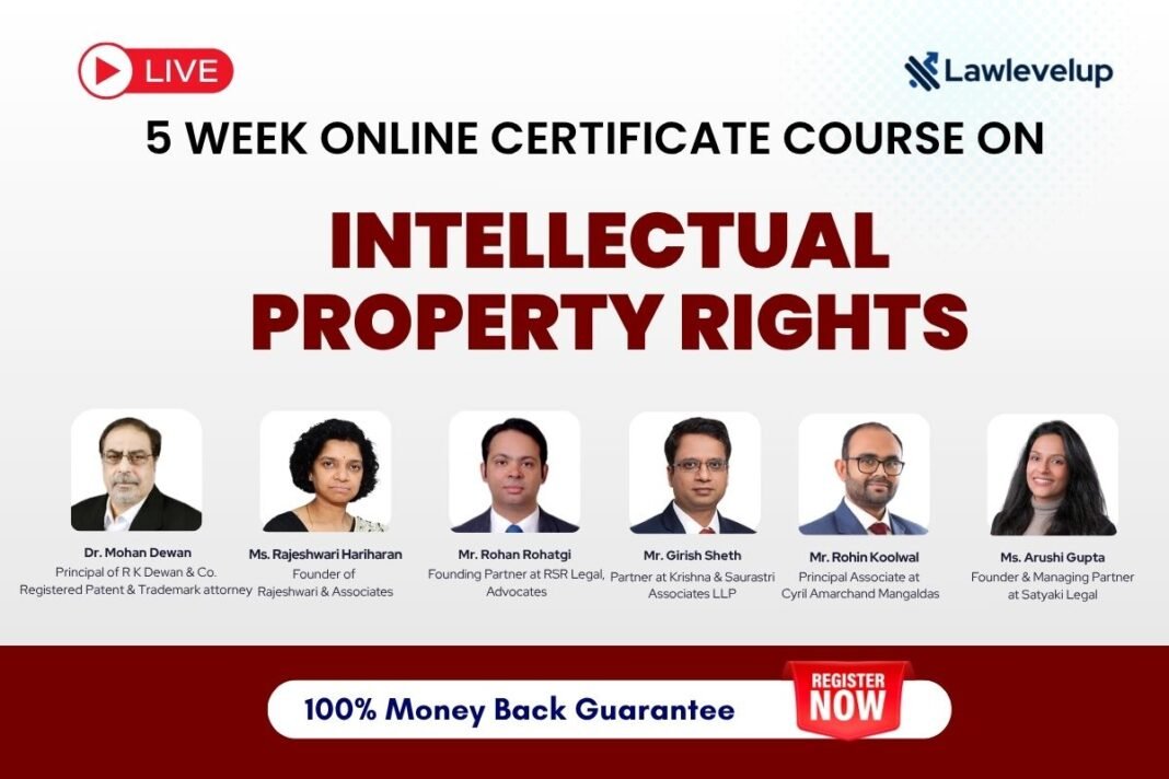 Lawlevelup flagship 5-week Certificate Course on Intellectual Property Rights. – Learn from Partners of top law firms partners and seniors.