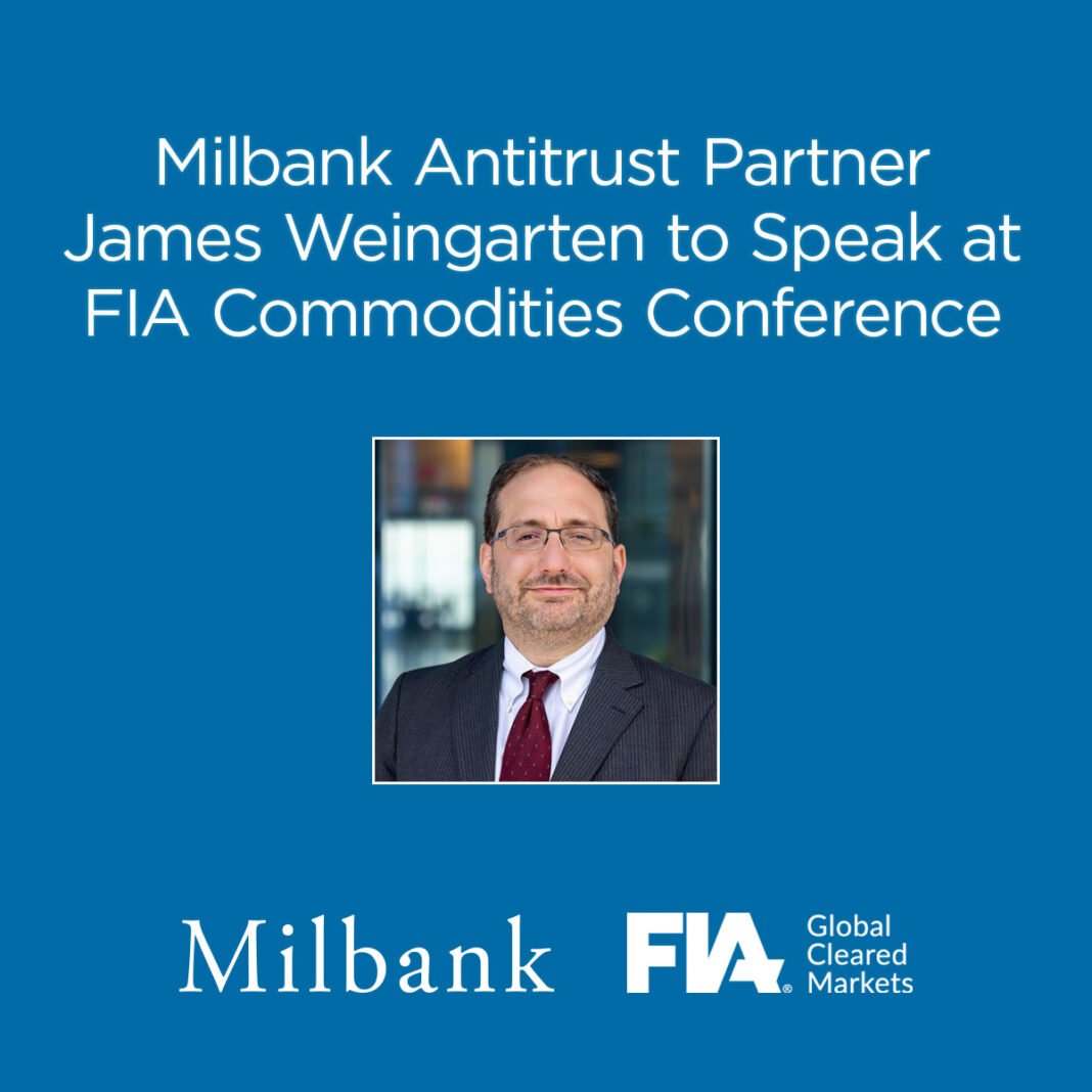 Milbank Antitrust Partner James Weingarten to Speak at FIA Commodities Conference