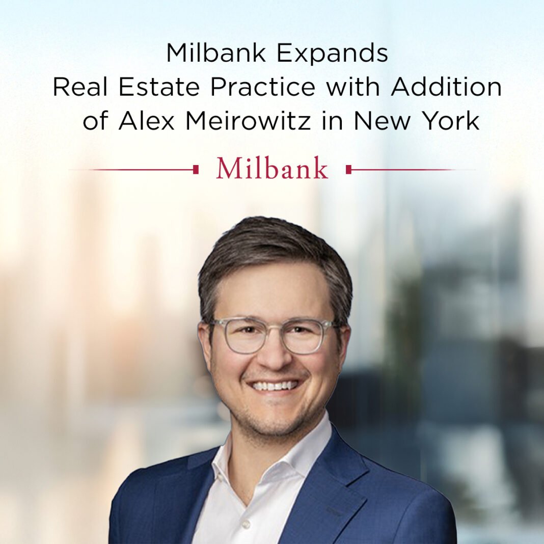 Milbank LLP is pleased to announce that Alex Meirowitz has joined its New York office as a partner in the firm’s Real Estate Group.