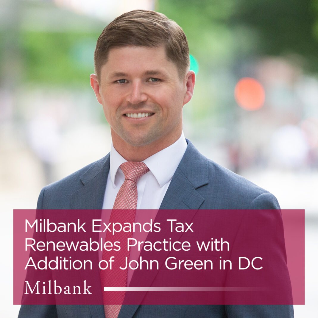 “Milbank’s energy and renewables practice is widely regarded as one of the most preeminent practices globally,” said Mr. Green. “I look forward to working closely with this market-leading team to help clients navigate the intricate tax and financing frameworks shaping the energy sector.”