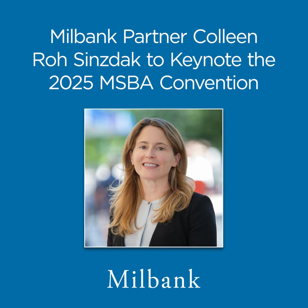 Milbank LLP Litigation & Arbitration partner Colleen Roh Sinzdak will be the keynote speaker at the 2025 MSBA Convention in Minneapolis.