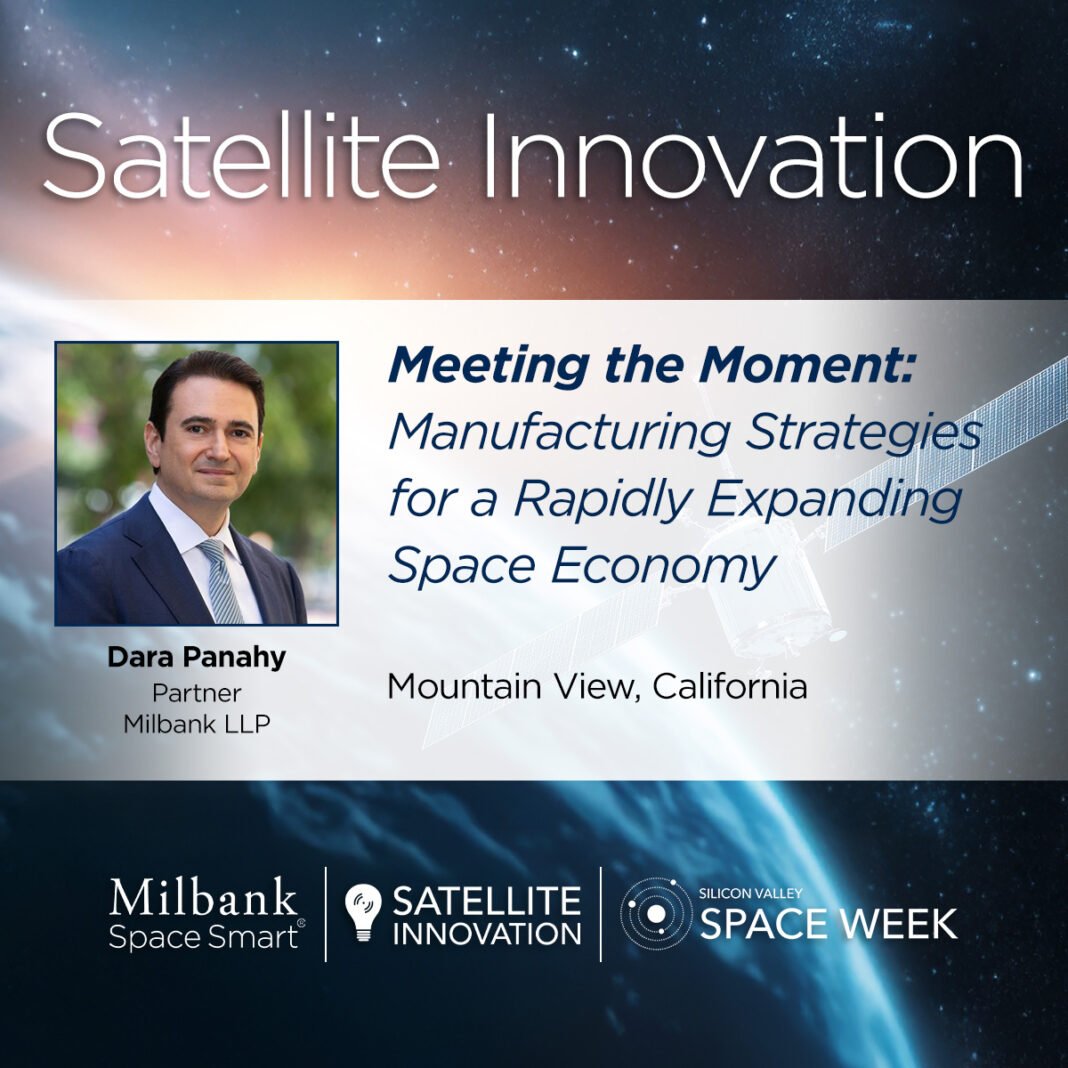 Dara Panahy, who leads Milbank LLP’s Transportation and Space practice in Washington, DC, moderated the “Meeting the Moment: Manufacturing Strategies for a Rapidly Expanding Space Economy” panel at the Satellite Innovation conference on October 29, 2025 in Silicon Valley, California. Panelists discussed changes, opportunities and challenges within the space economy and space infrastructure; navigating manufacturers’ supply chain issues; In-Space Servicing, Assembly and Manufacturing; emerging technologies and more.