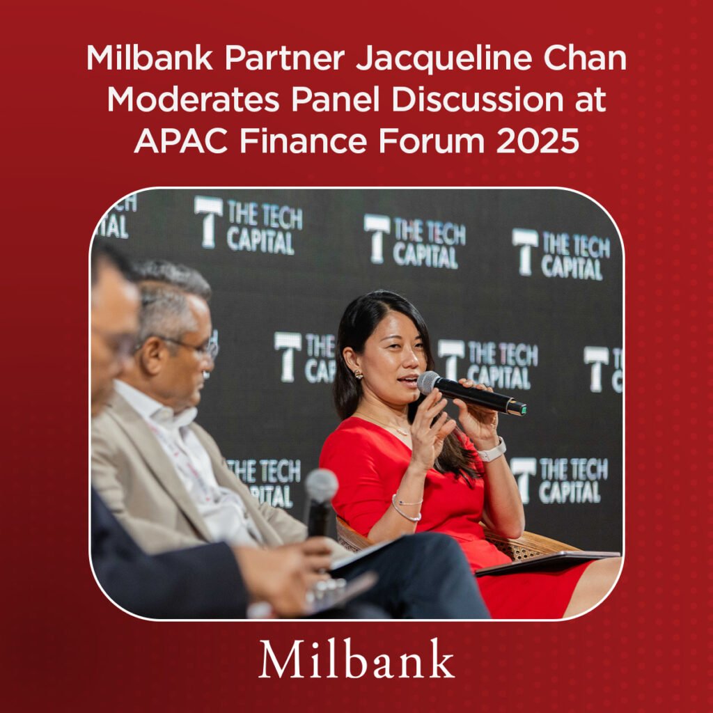 Jacqueline Chan, a partner in Milbank LLP’s Singapore office, was a panelist on a panel discussion titled “Regulatory Horizons: Compliance and Policy in the Digital Infrastructure Ecosystem” at the 2025 APAC Finance Forum on September 25 in Singapore.