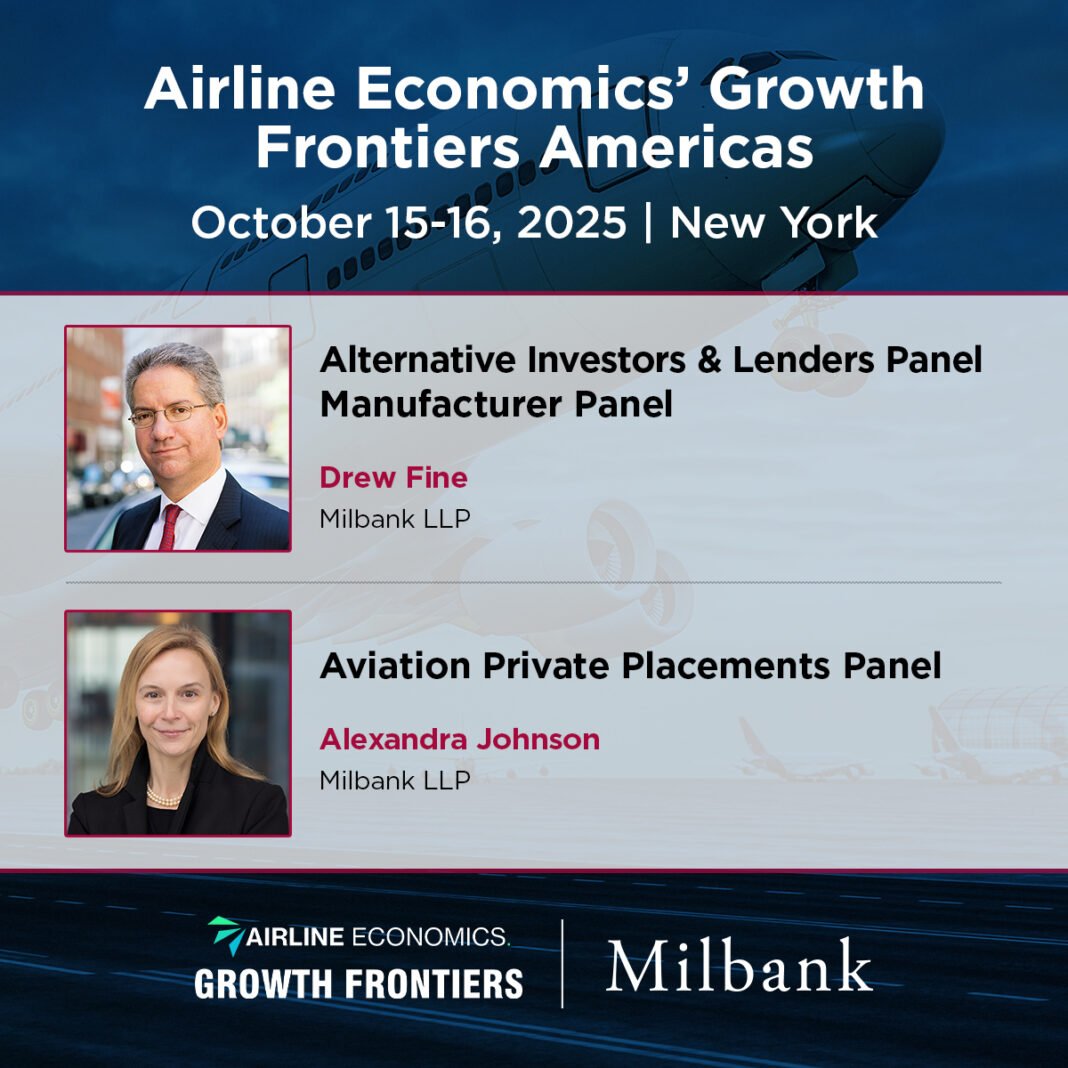 Milbank LLP Transportation and Space partners Drew Fine and Alexandra Johnson will moderate and speak at Airline Economics’ Growth Frontiers Americas conference in New York, taking place October 15-16, 2025.