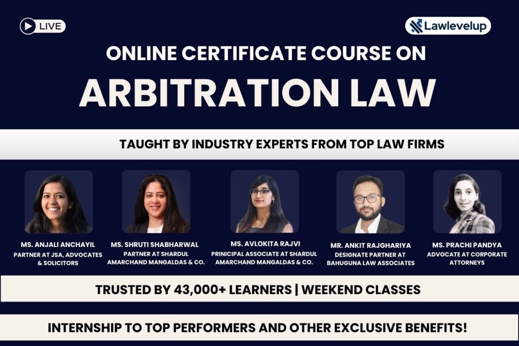 Lawlevelup is organising an online Certificate Course on Arbitration Law.