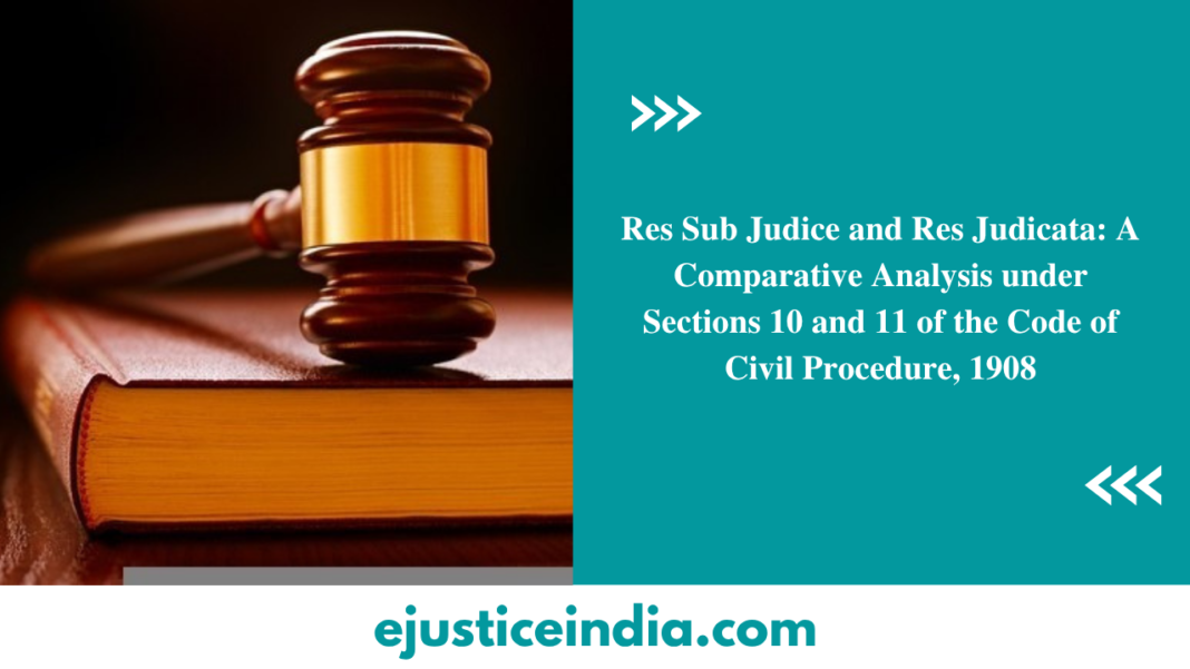 The doctrines of Res Sub Judice and Res Judicata occupy pivotal positions in civil jurisprudence. Both aims to prevent multiplicity of proceedings, avoid conflicting judgments, and uphold judicial economy. Section 10 of the Code of Civil Procedure, 1908 (CPC) encapsulates the principle of Res Sub Judice, which bars the trial of a matter already pending before a competent court, while Section 11 enshrines Res Judicata, which prevents re-litigation of issues that have been finally decided. Though similar in spirit, both doctrines differ in their application, purpose, and effect. This article undertakes a comparative analysis of Sections 10 and 11 CPC, exploring their scope, essentials, judicial interpretations, and underlying rationale in the Indian legal system.