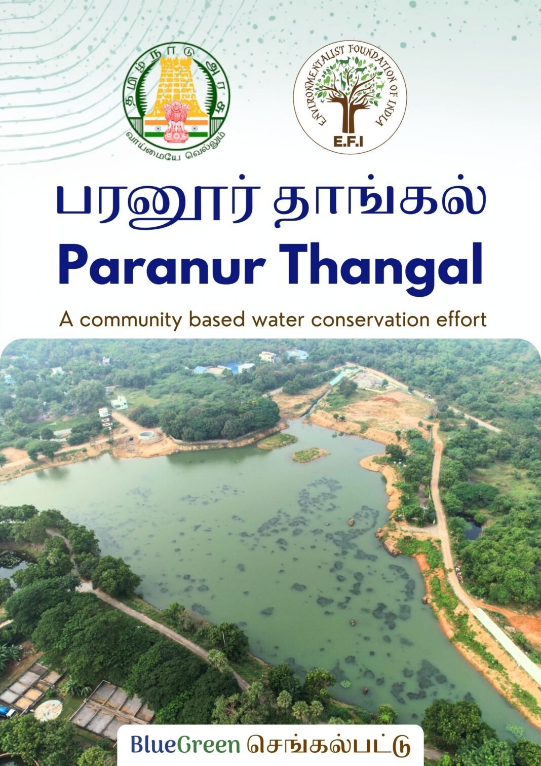 Paranur Thangal, located in Paranur village, is one of the many significant waterbodies in the Chengalpattu–Chennai region. With forests and a massive tech park to the north, Kolavai Lake to the south, and Paranur village to the east, this lake plays an important role in the local hydrological landscape.Over the years, the waterbody faced serious threats including extensive garbage dumping, the spread of invasive weeds, poorly maintained structures, excess silt deposition, and an unregulated inlet system. Recognizing the urgency, the Chengalpattu District Administration and E.F.I undertook the restoration of this lake through a collaborative effort under the #BlueGreenChengalpattu initiative to improve groundwater recharge and enhance surface water storage.