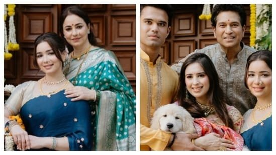 In the carousel of pictures, the first featured a colourful ethnic look, multicoloured, as she posed for the mehndi. Saaniya Chandhok, who tied the knot with Arjun, was also seen enjoying herself, dressed in a pink outfit with golden detailing. In the last pictures, Sara sported a traditional Maharashtrian look with the iconic accessory, the nath, draped in a blue saree.