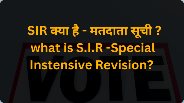 आज के इस लेख में हम “ SIR क्या है ? what is S.I.R -Special Instensive Revision ? विशेष गहन पुनरीक्षण जिसका सम्बन्ध चुनाव आयोग से है जो मतदाता सूची तैयार किये जाने में सहायक होती है , यह एक चुनाव आयोग की प्रक्रिया है जिसका प्रबंधन चुनाव आयोग द्वारा किया जाता है।