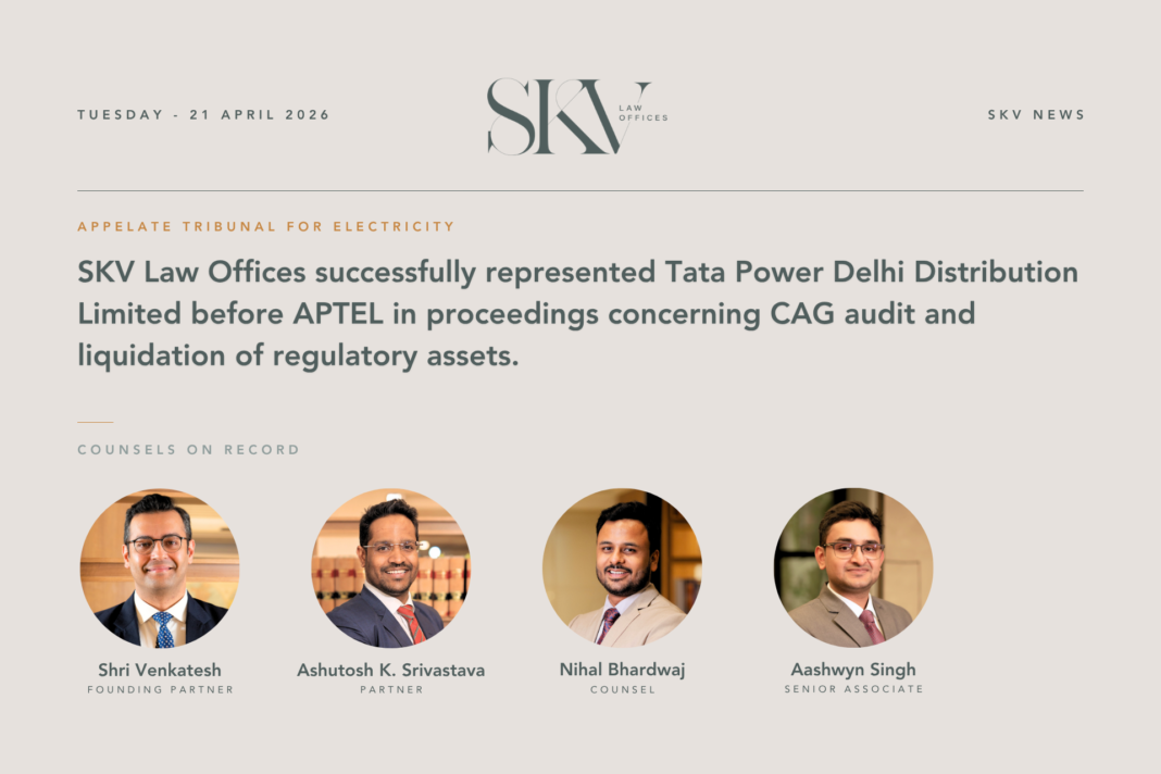 SKV Law Offices successfully represented Tata Power Delhi Distribution Limited before APTEL in proceedings concerning CAG audit and liquidation of regulatory assets