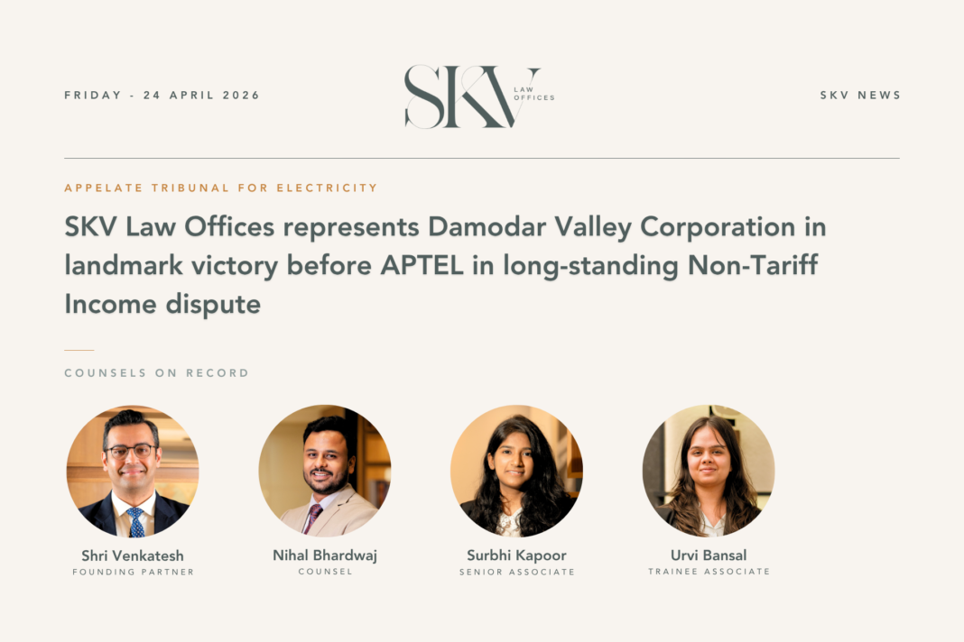 SKV Law Offices had the privilege of representing Damodar Valley Corporation in its long-standing dispute concerning the treatment of Non-Tariff Income (NTI) in DVC’s distribution tariff proceedings before Jharkhand State Electricity Regulatory Commission (JSERC).