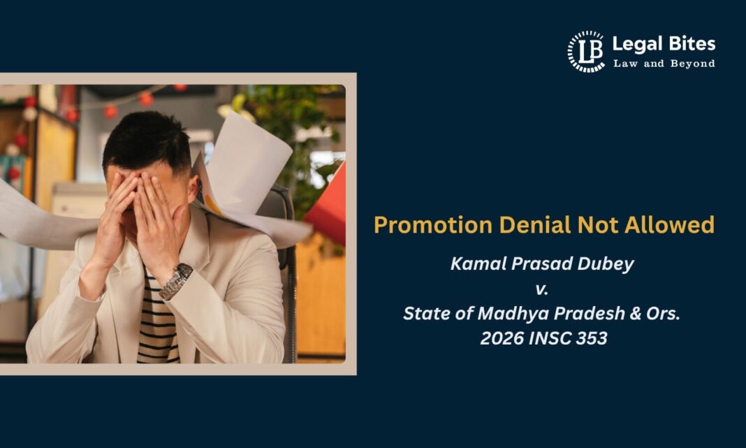 The Supreme Court of India, in Kamal Prasad Dubey v. State of Madhya Pradesh & Ors. (2026 INSC 353), delivered a significant judgment reinforcing the constitutional guarantee of equality in public employment under Articles 14 and 16. The Court emphatically held that denial of promotion to an employee, while granting identical benefits to similarly situated individuals, constitutes arbitrariness and discrimination.