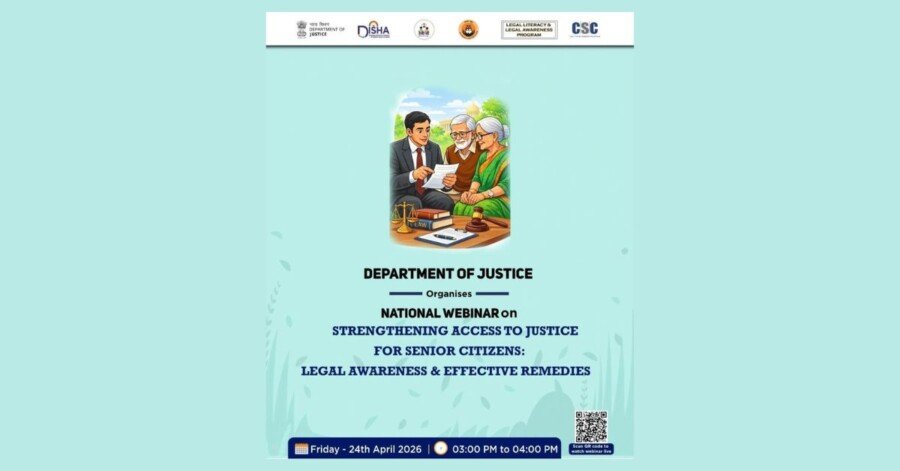 The Department of Justice is organising a National Webinar on “Strengthening Access to Justice for Senior Citizens: Legal Awareness & Effective Remedies” under the DISHA Scheme.